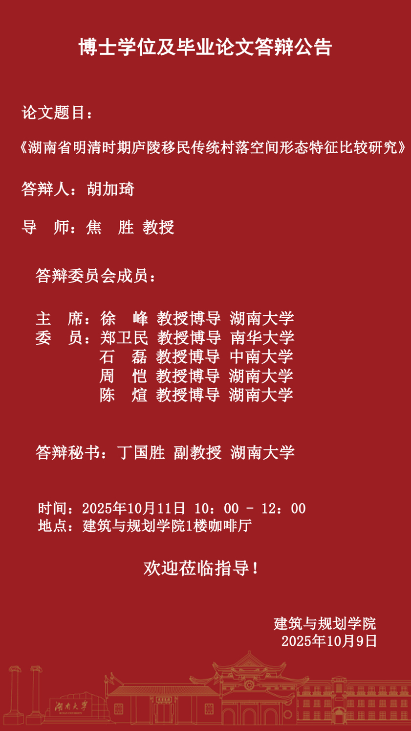 博士学位及毕业论文答辩公告-2025年10月11日